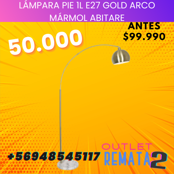 Lámpara pie 1L E27 Gold arco mármol Abitare