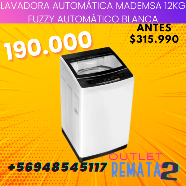 Lavadora Automática Mademsa 12Kg Carga Superior Fuzzy Automático 12 BZG Blanca