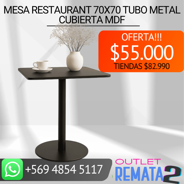 Mesa restaurant 70×70 Tubo Metal cubierta MDF