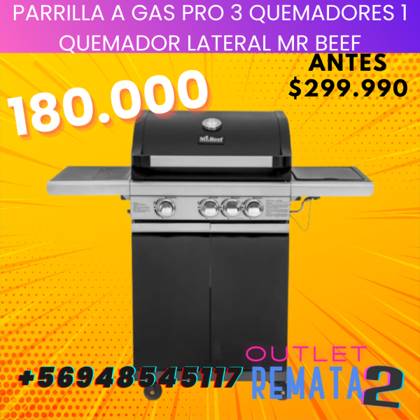 Parrilla a Gas Pro 3 Quemadores 1 Quemador Lateral MR BEEF