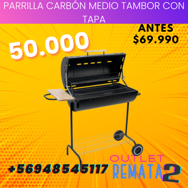 Parrilla a Carbón con Tapa y Ruedas Metal MR BEEF