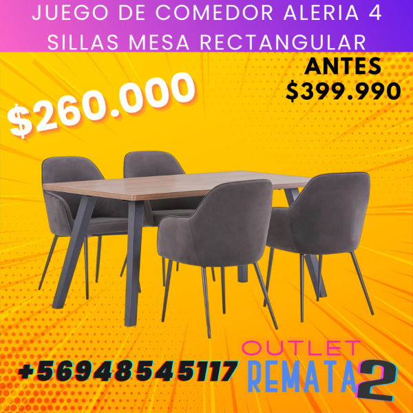 Juego de Comedor Aleria 4 Sillas Mesa Rectangular