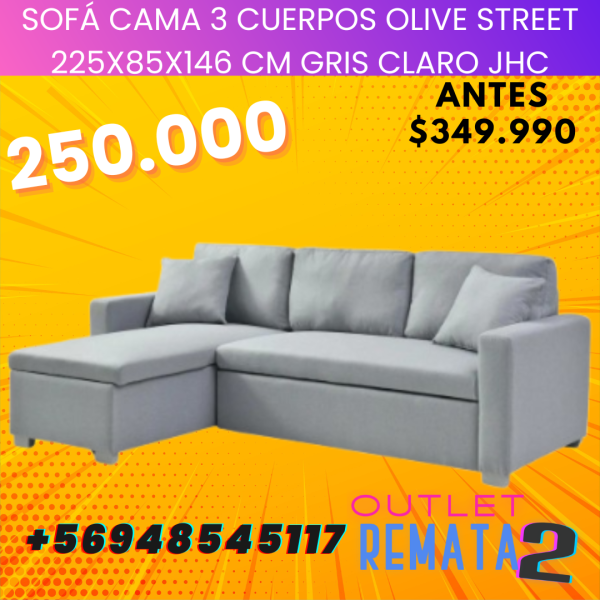 Sofá Cama 3 cuerpos Olive street 225x85x146 cm Gris claro JHC