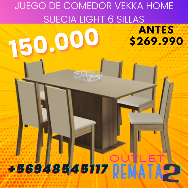 JUEGO DE COMEDOR VEKKA HOME SUECIA LIGHT 6 SILLAS