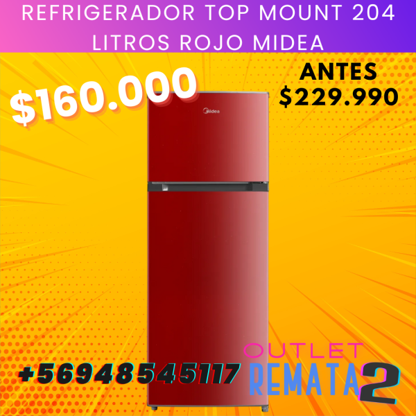 Refrigerador Top Mount 204 Litros Rojo Midea