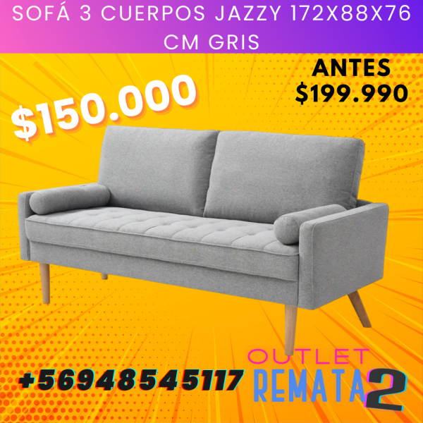 Sofá 3 cuerpos Jazzy 172x88x76 cm Gris