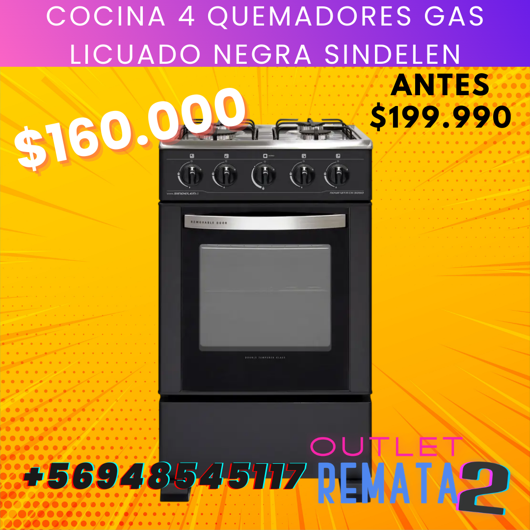 Cocina 4 quemadores gas licuado negra SINDELEN