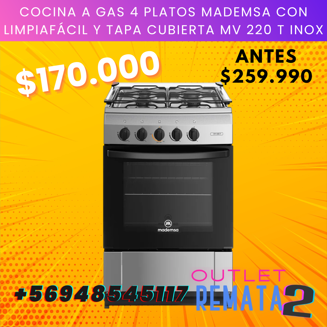 Be the first to review “Cocina a Gas 4 Platos Mademsa con LimpiaFácil y Tapa Cubierta MV 220 T Inox” Cancelar la respuesta