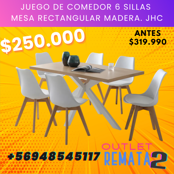 Juego de Comedor 6 Sillas Mesa Rectangular Madera jhc $319.990 $250.000