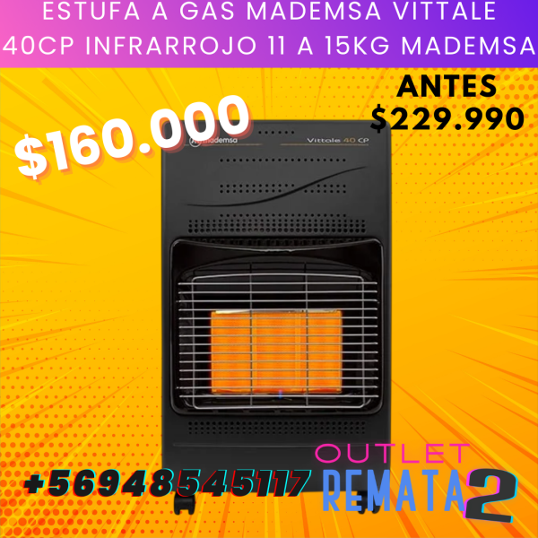 ESTUFA A GAS MADEMSA VITTALE 40CP INFRARROJO 11 A 15KG MADEMSA $229.990 $160.000