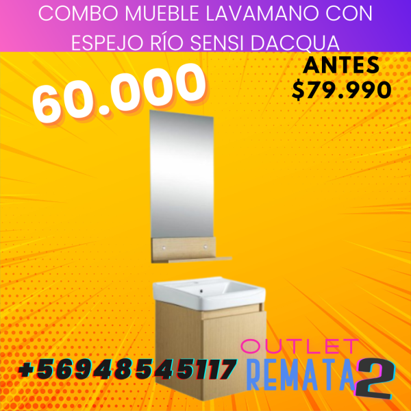 Combo mueble lavamano con espejo río SENSI DACQUA $79.990 $60.000