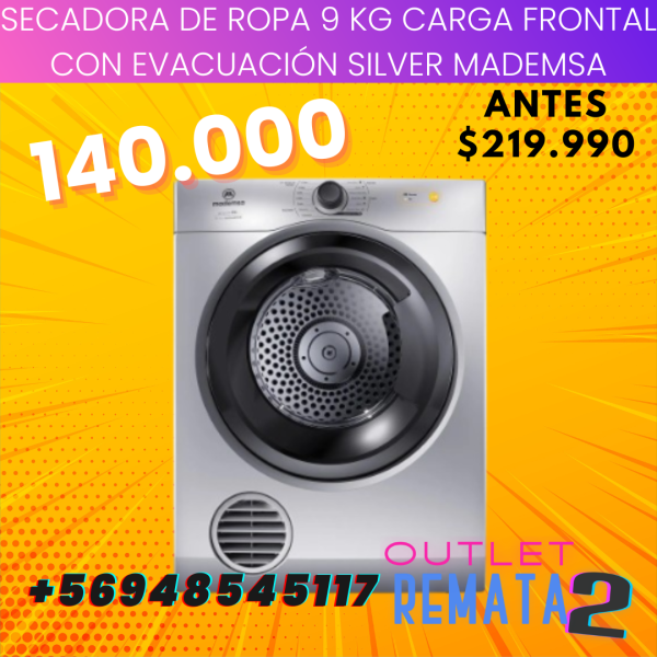 Secadora de Ropa 9 kg Carga Frontal con Evacuación Silver MADEMSA $219.990 $140.000