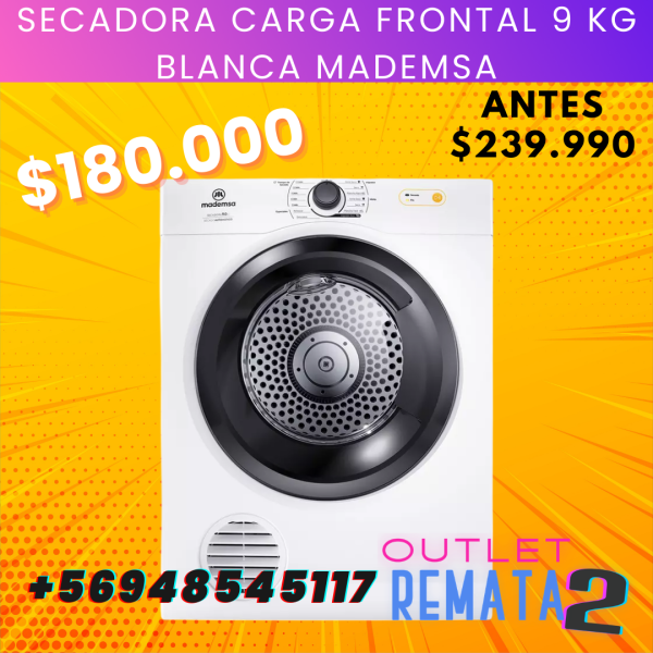 Secadora Carga Frontal 9 Kg Blanca MADEMSA $239.990 $180.000