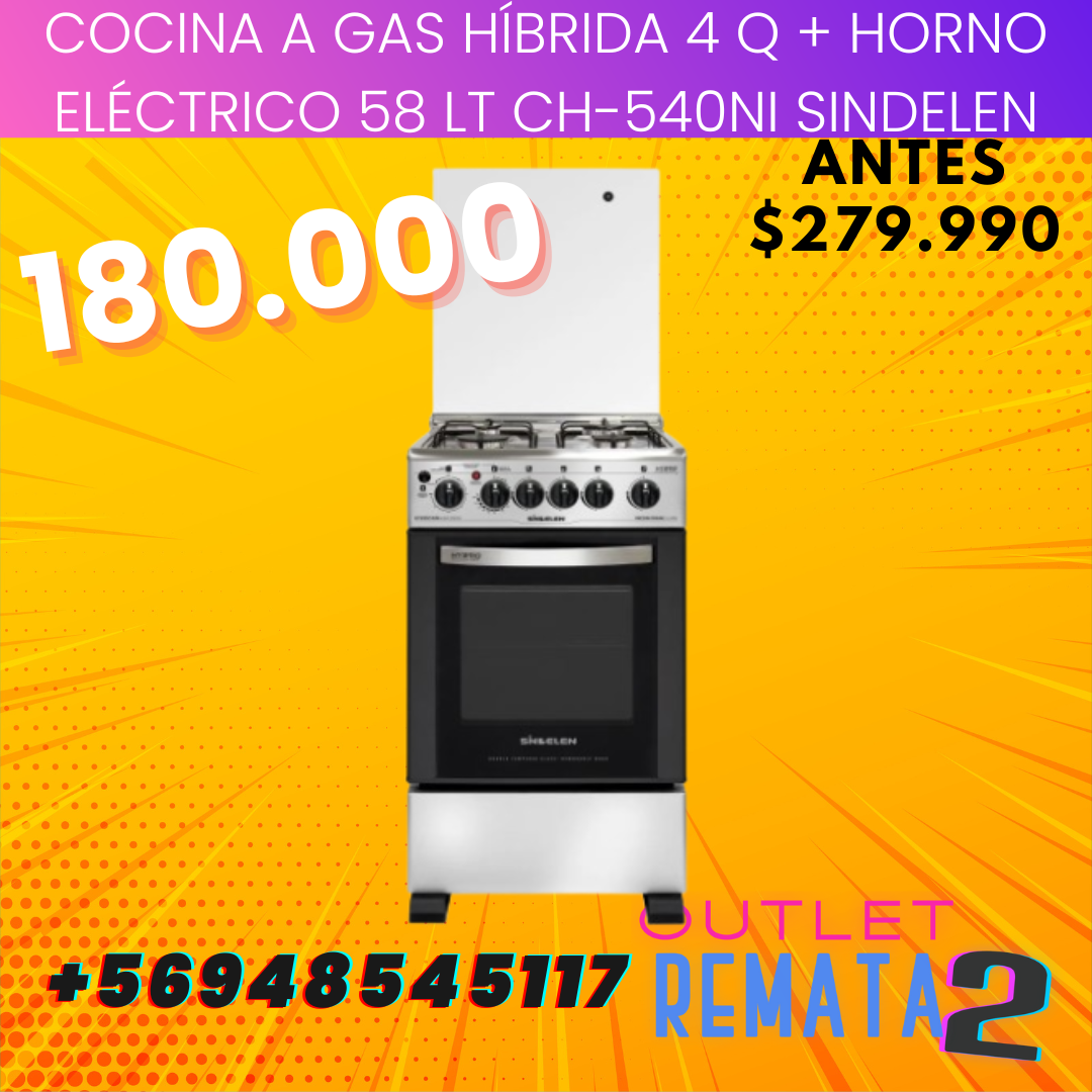 Cocina A Gas Híbrida 4 Quemadores + Horno Eléctrico 58 lt Ch-540Ni Sindelen
