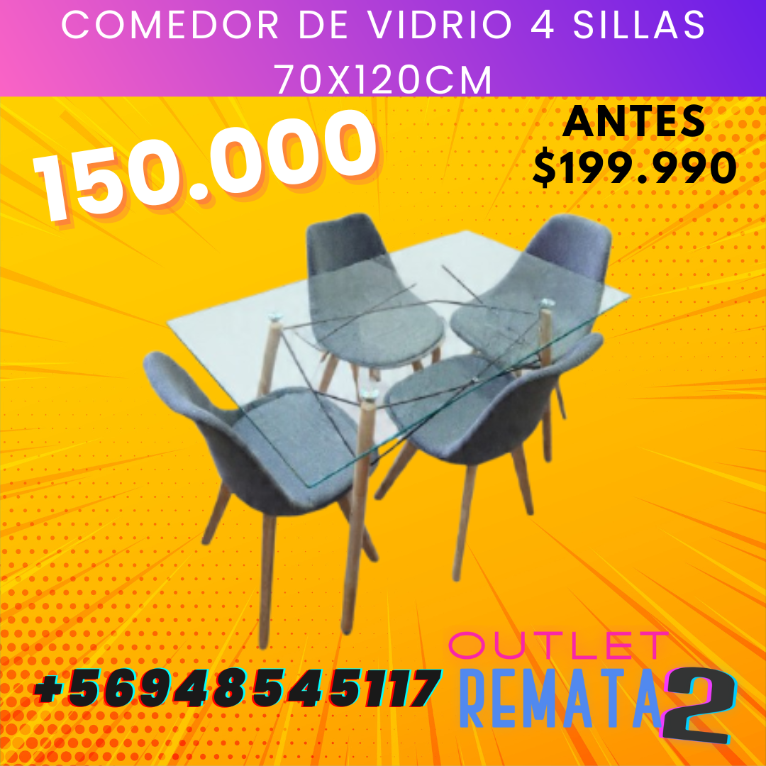 HomeTODOS comedor de vidrio 4 sillas 70×120