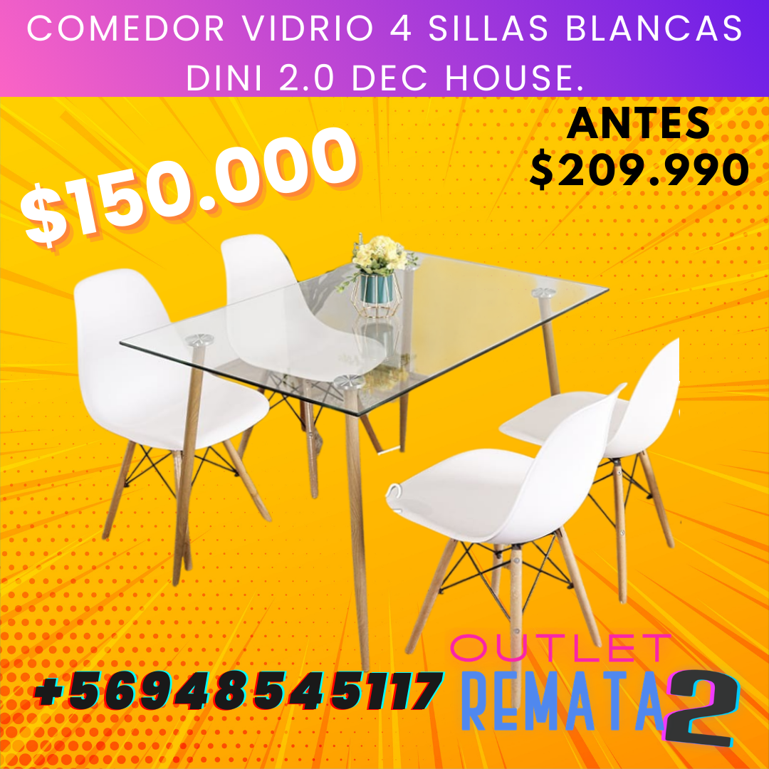 COMEDOR DE VIDRIO 4 SILLAS BLANCAS EAMES