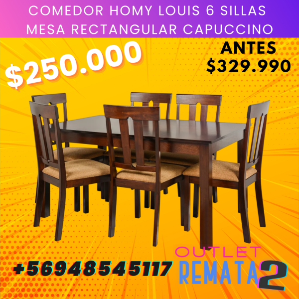 Comedor HOMY Louis 6 Sillas Mesa Rectangular Capuccino