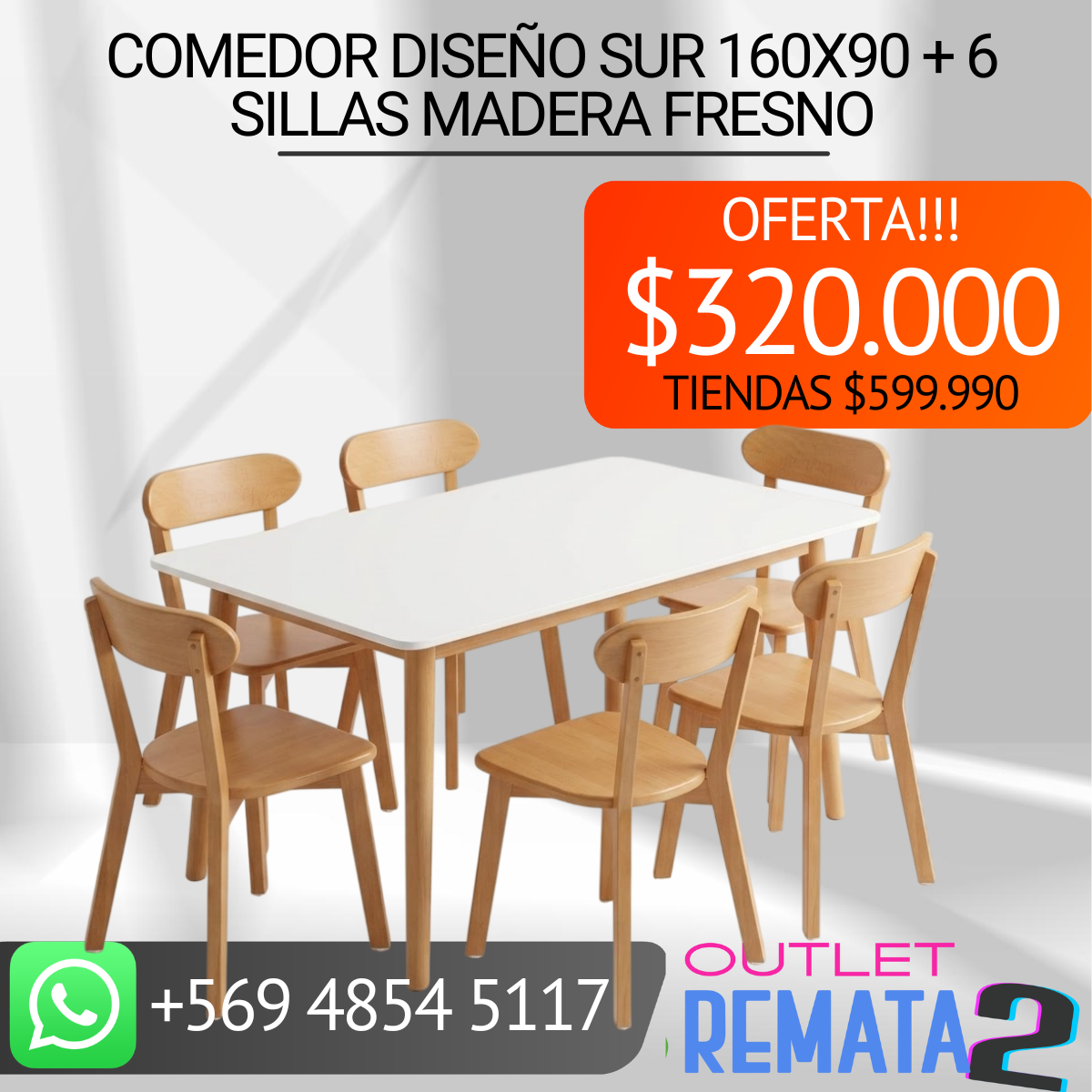 Comedor diseño sur 160×90 + 6 sillas madera fresno
