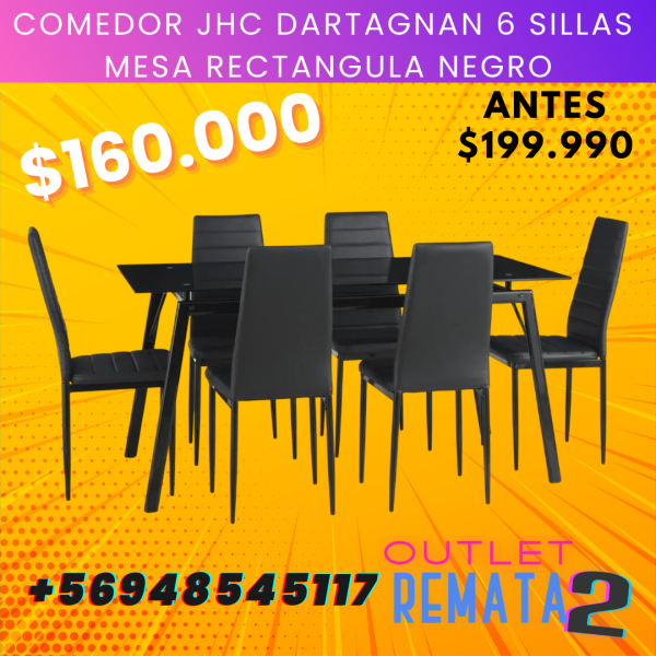 Comedor Dartagnan 6 Sillas Mesa Rectangular Negro JHC $199.990 $160.000