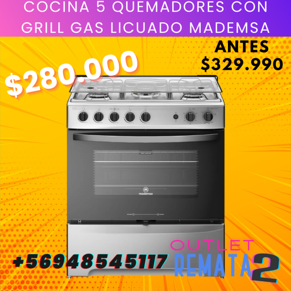 Cocina 5 Quemadores Con Grill Gas Licuado Mademsa $329.990 $280.000