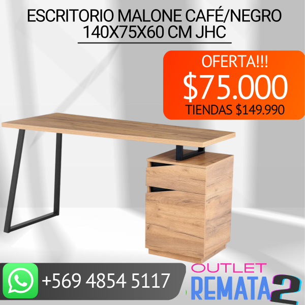 Escritorio Malone Café-Negro 140x75x60 cm JHC $149.990 $75.000