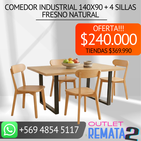 comedor industrial 140x90 + 4 sillas fresno natural $369.990 $240.000