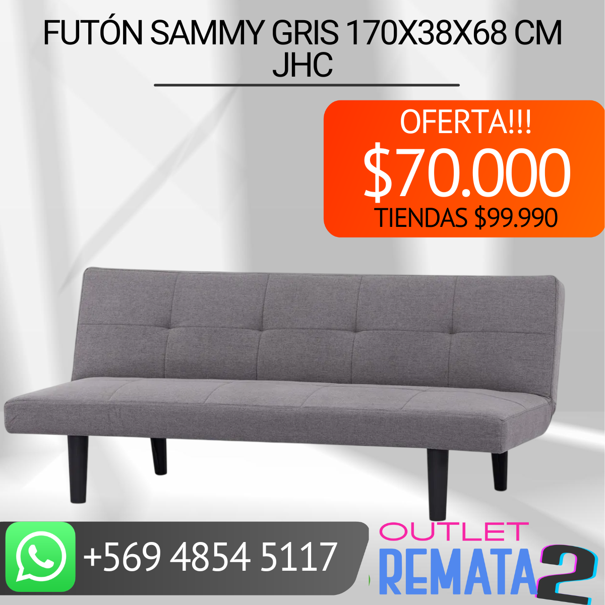 Be the first to review “Futón Sammy Gris 170x38x68 cm JHC” Cancelar la respuesta