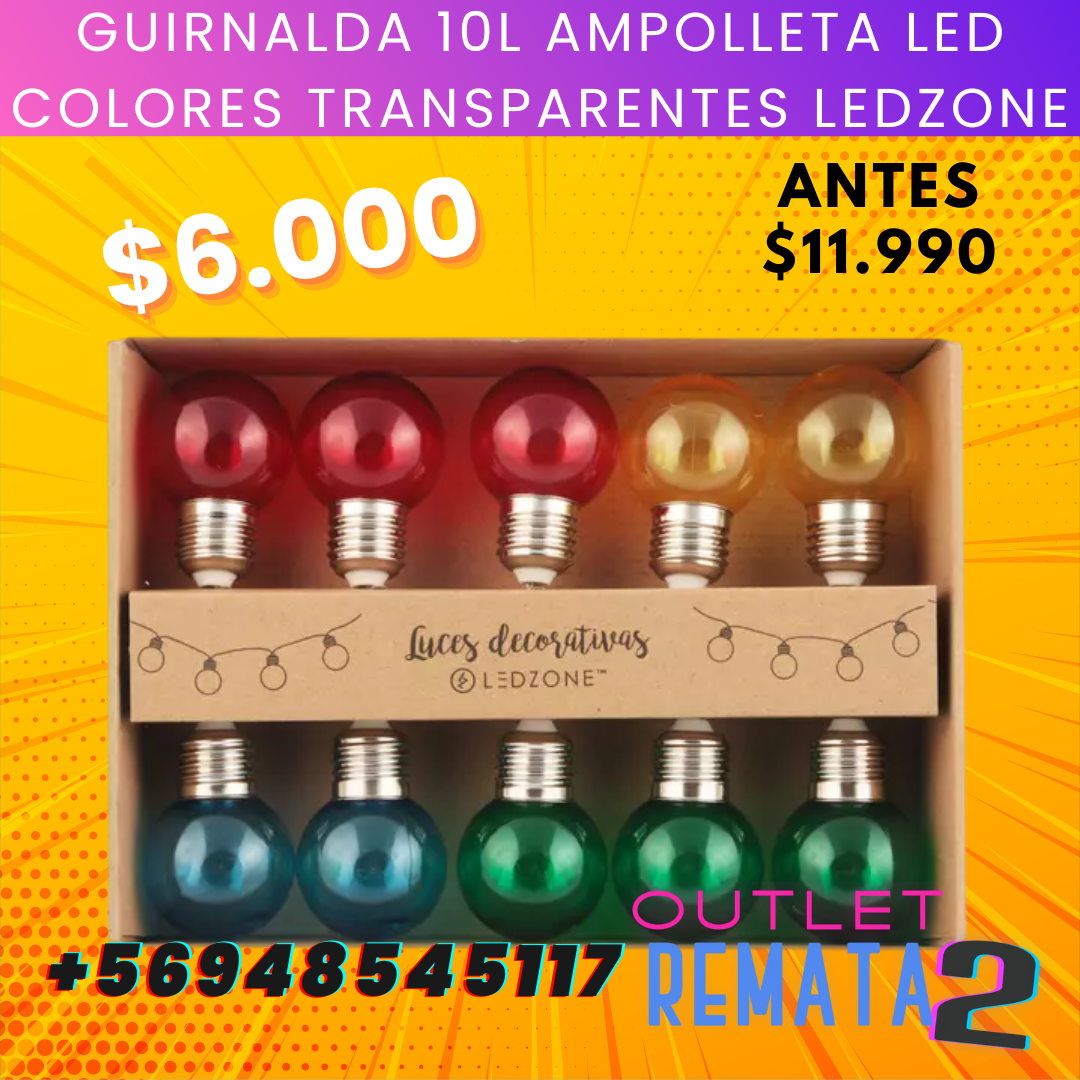 Guirnalda 10L ampolleta LED colores transparentes Ledzone