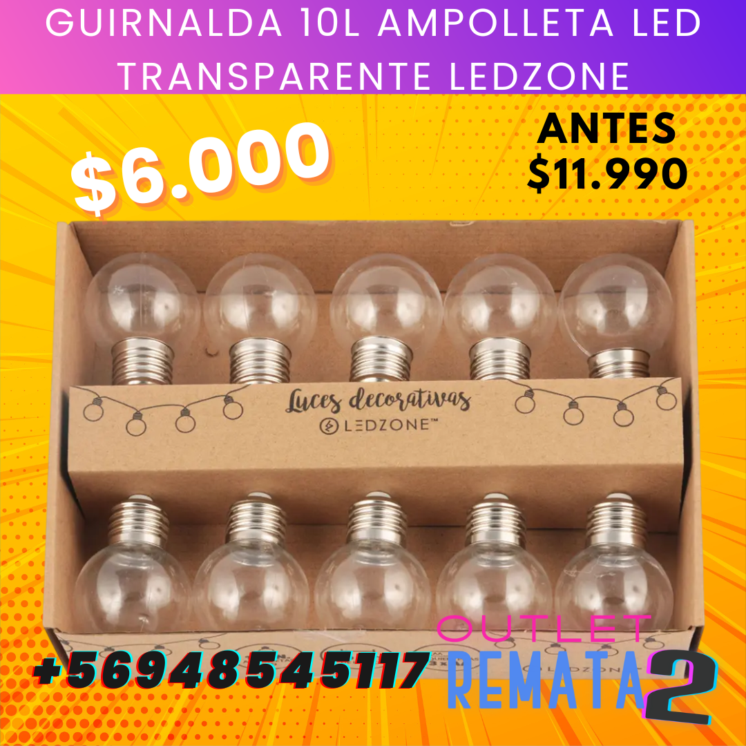 Guirnalda 10L ampolleta LED colores transparentes Ledzone $11.990 $6.000