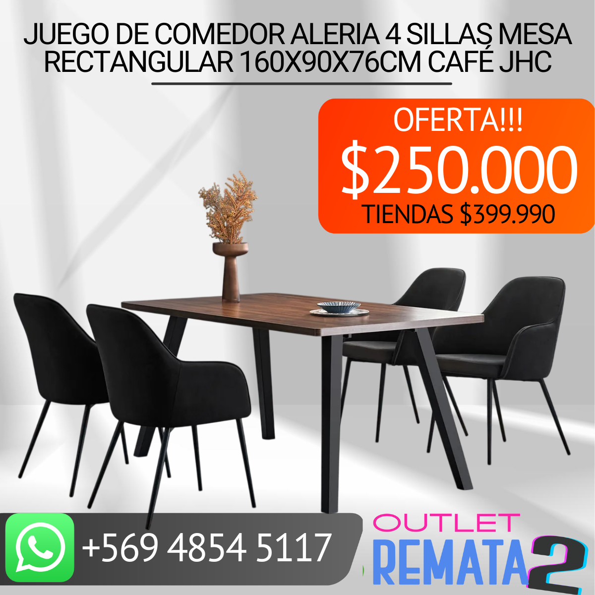 Be the first to review “Juego de Comedor Aleria 4 Sillas Mesa Rectangular 160x90x76cm Café JHC” Cancelar la respuesta