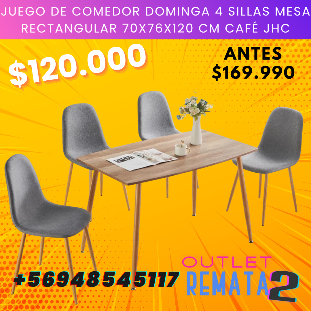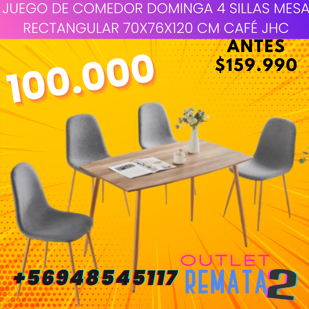 Juego de Comedor Dominga 4 Sillas Mesa Rectangular 70x76x120 cm Café JHC