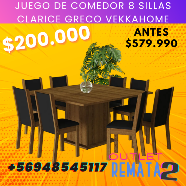 Juego De Comedor 8 Sillas Clarice Greco Vekkahome $579.990 $200.000