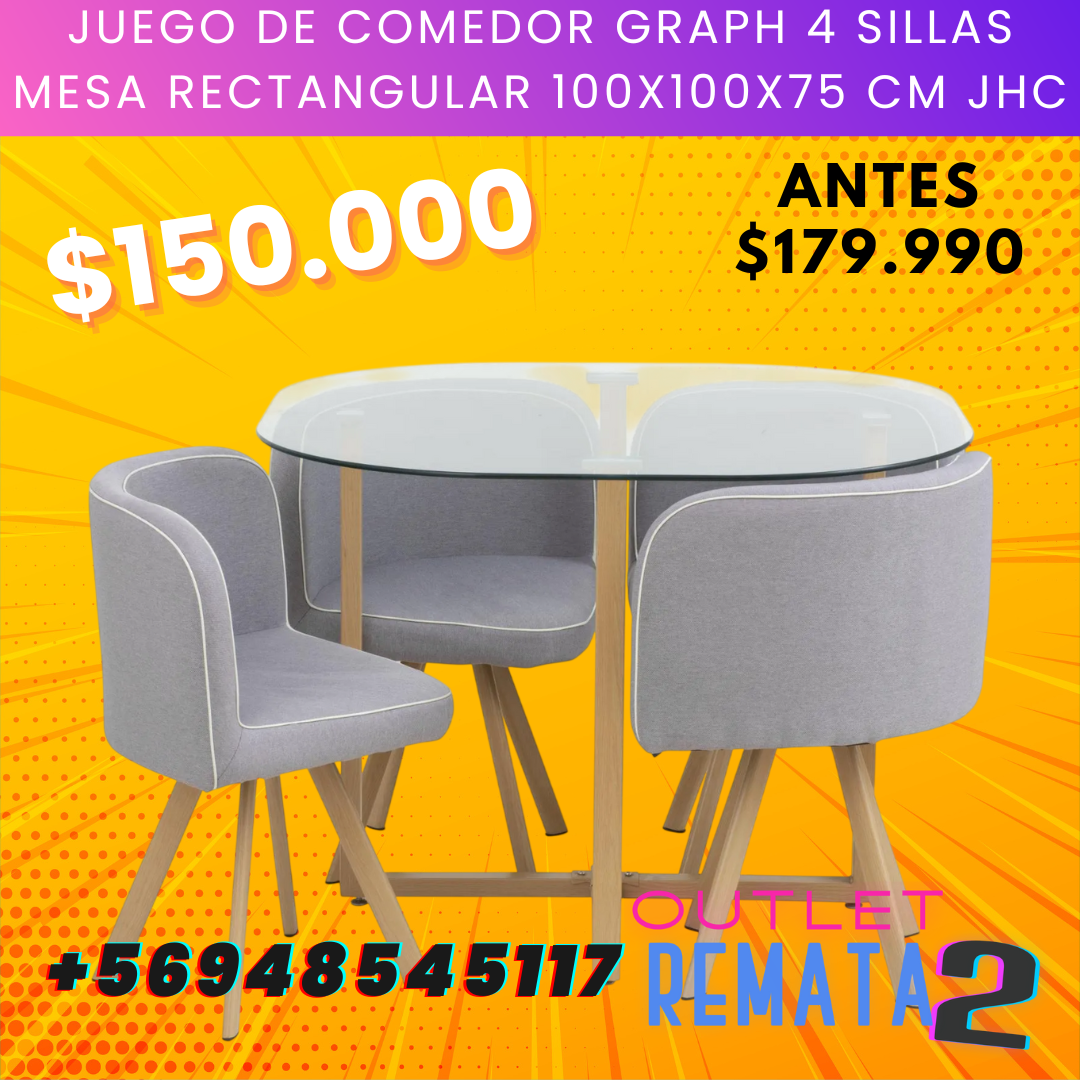 Be the first to review “Juego de Comedor Graph 4 Sillas Mesa Rectangular 100x100x75 cm JHC” Cancelar la respuesta