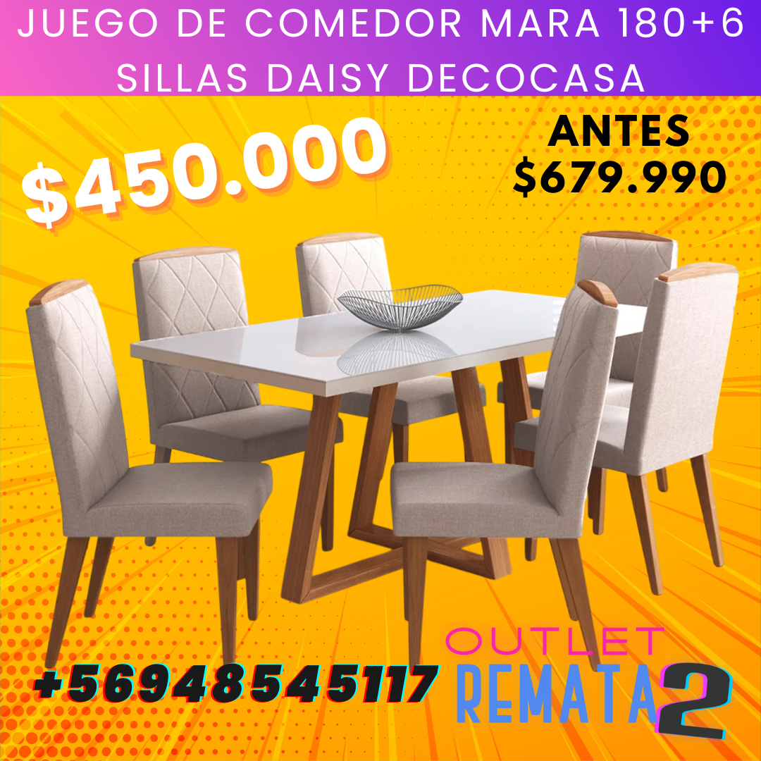 HomeTODOS Juego De Comedor Mara 180+6 Sillas Daisy Decocasa