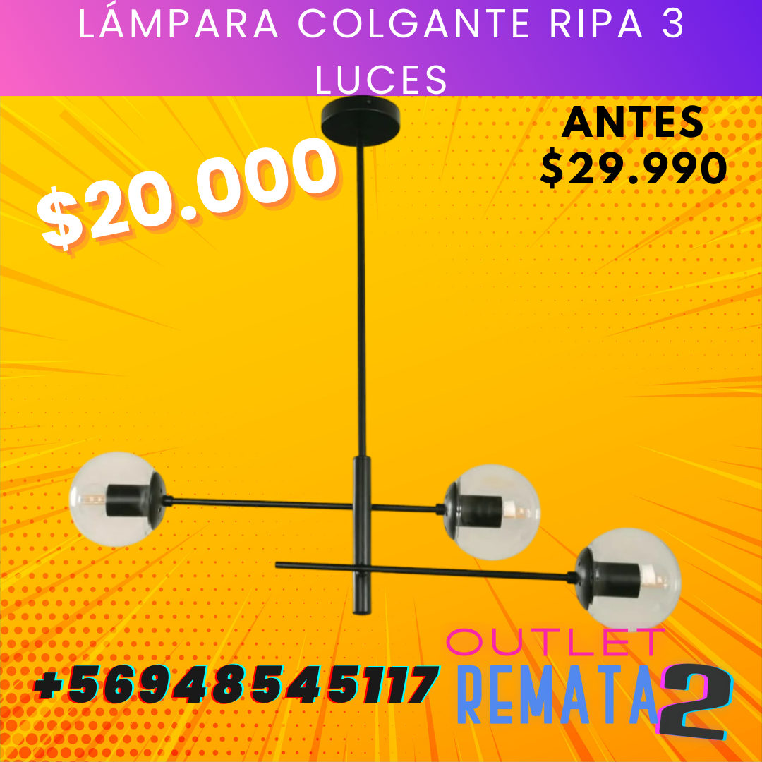 Be the first to review “Lámpara colgante ripa 3 luces” Cancelar la respuesta