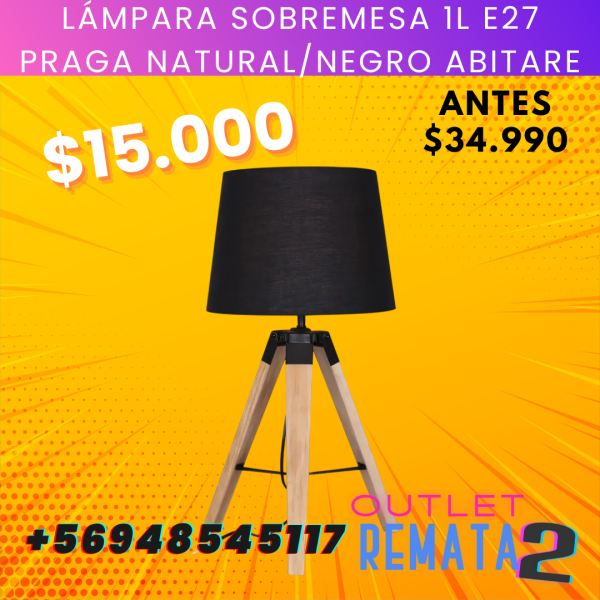 Lámpara sobremesa 1L E27 Praga natural-negro Abitare