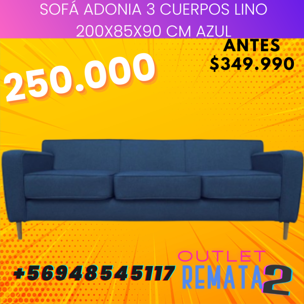 Sofá Adonia 3 Cuerpos Lino 200x85x90 cm AZUL