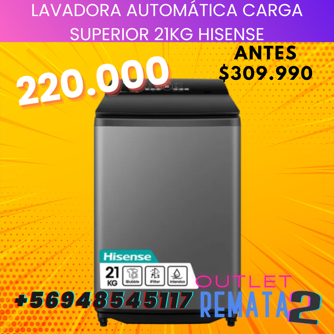 HomeElectrohogar Lavadora Automática Carga Superior 21Kg Hisense