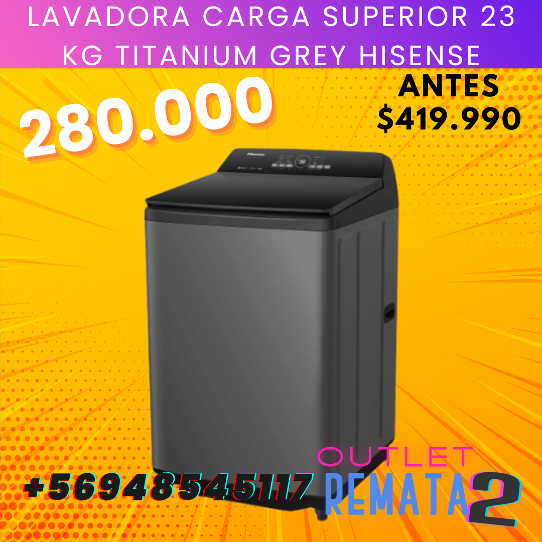 HomeElectrohogar Lavadora Carga Superior 23 kg Titanium Grey HISENSE
