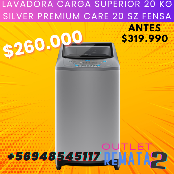 Lavadora Carga Superior 20 kg Silver Premium Care 20 SZ FENSA $319.990 $260.000