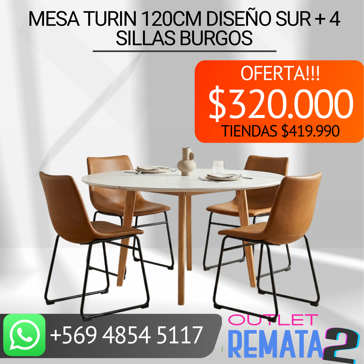 Mesa turin 120cm diseño sur + 4 sillas burgos