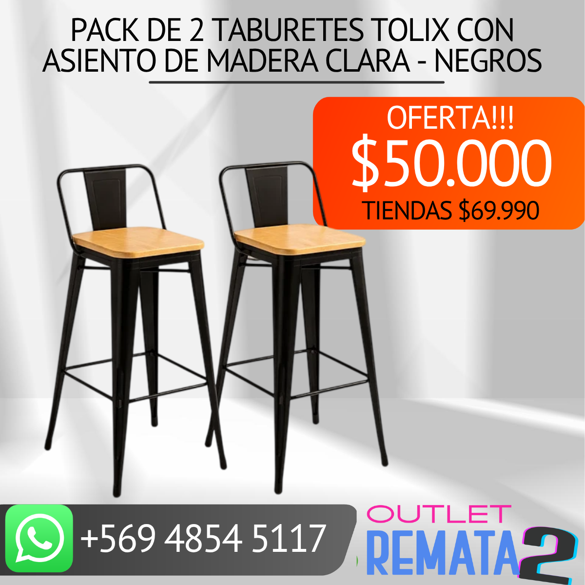 Be the first to review “Pack de 2 Taburetes Tolix Con Asiento De Madera Clara – Negros” Cancelar la respuesta