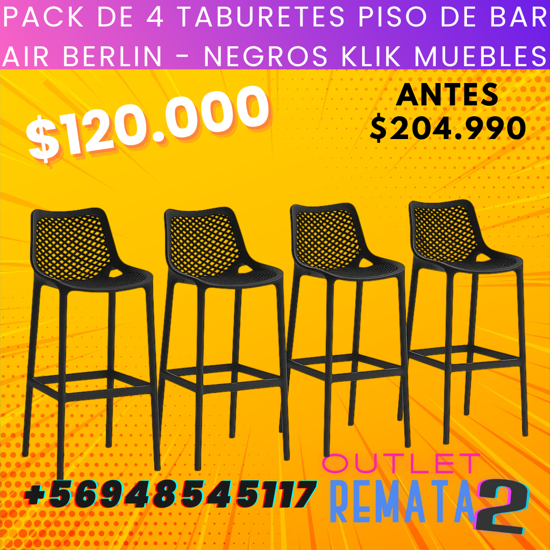 HomeTODOS PACK DE 4 TABURETES PISO DE BAR AIR BERLIN – NEGROS KLIK MUEBLES