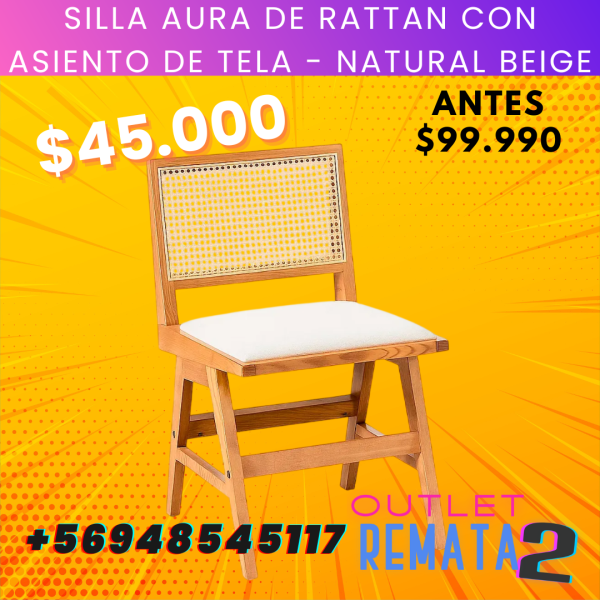 Silla Aura de Rattan con Asiento de Tela - Natural Beige $99.990 $45.000