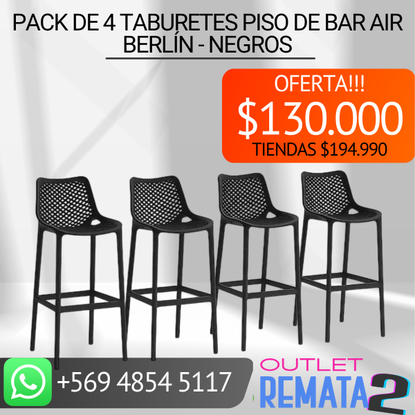 Pack de 4 Taburetes Piso de Bar Air Berlín - Negros $194.990 $130.000