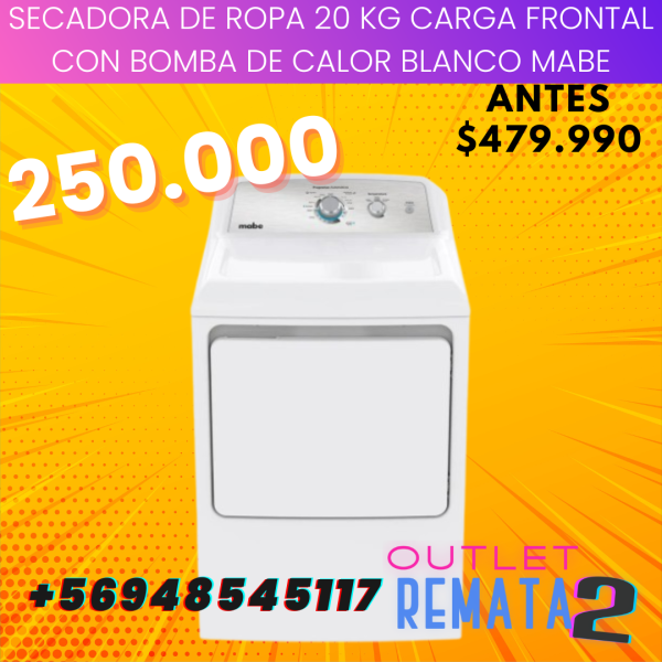Secadora de Ropa 20 kg Carga Frontal con Bomba de calor Blanco MABE $479.990 $250.000
