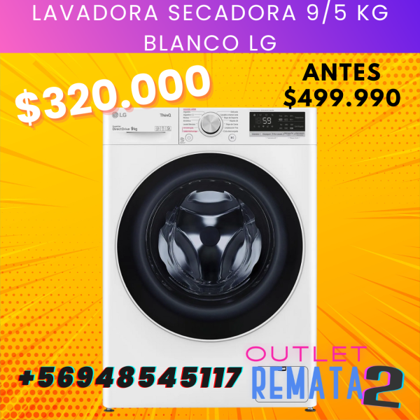 Lavadora Secadora 9-5 kg Blanco LG $499.990 $320.000