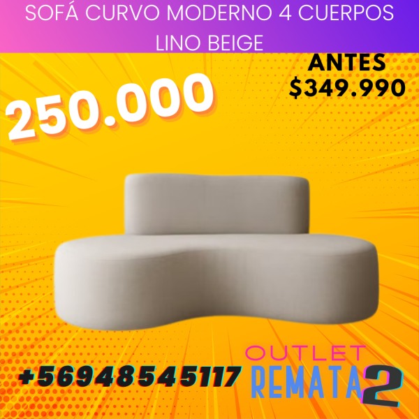 Sofá Curvo Moderno 4 Cuerpos Lino Beige $349.990 $250.000