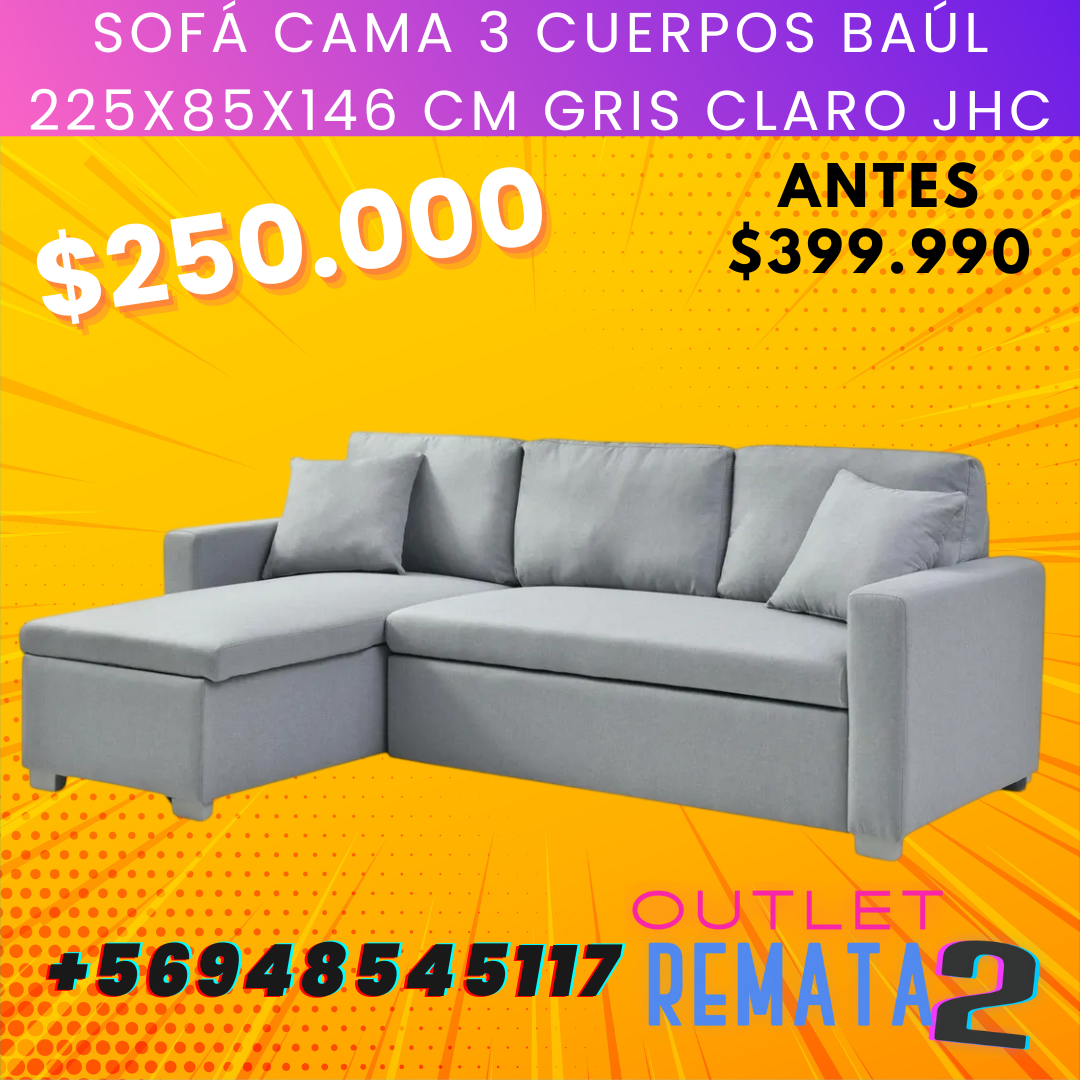 Sofá Cama 3 cuerpos Baúl 225x85x146 cm Gris claro jhc