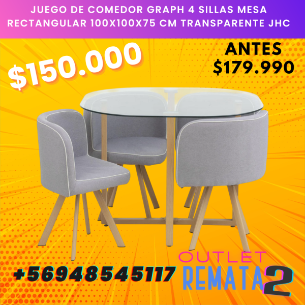 Juego de Comedor Graph 4 Sillas Mesa Rectangular 100x100x75 cm Transparente jhc $179.990 $150.000